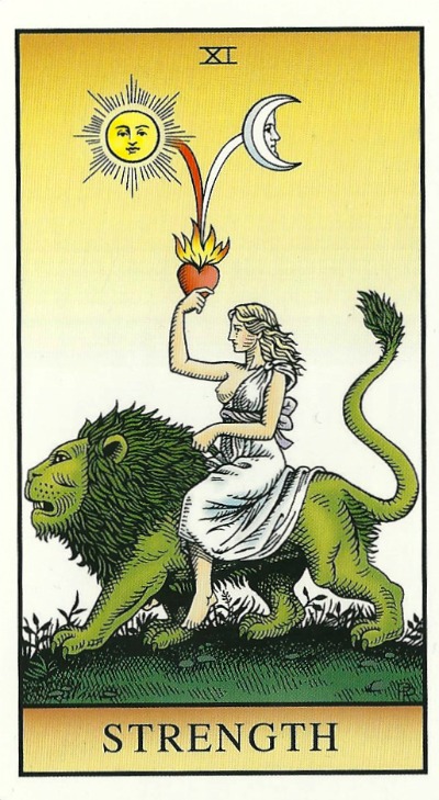 *Strength is sometimes number 8, sometimes number 11 in the Major Arcana of the Tarot Deck (thereby swapping with Justice), depending on which deck you are using. In this deck Strength is number 11. I refer to Strength as 8 for various reasons, one of the main ones probably just being that the decks I learned on all featured Strength as 8. Apparently it can be quite a contentious issue in the tarot community! I reckon just use your own intuition as to which number you refer to as Strength (if such things concern you or are relevant to you!) 🙂