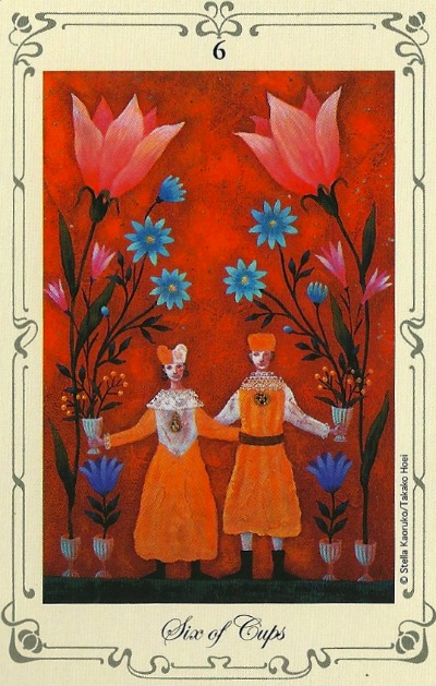 This month features the subtle and heart-warming ways of the 6 of Cups, and a photo of one of many extraordinary sunsets I have witnessed at the Vipassana Meditation Centre in Blackheath (I just got back last week).