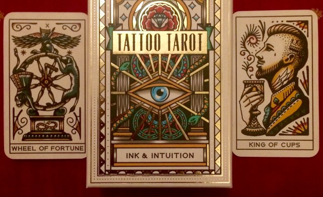 This month’s Tarot Reading for the Collective comes to you courtesy of Tattoo Tarot by Megamunden & Diana McMahon Collis. This tarot deck was a recent gift for my partner and I from our friend Elspeth. She looked most pleased with herself as she handed it over, and for good reason: what an appropriate gift it was for the Tarot Reader & Tattooer couple. I had been wondering what deck to use for August’s reading, so it was most serendipitous that one conveniently came to my front door! Thank you Elspeth!