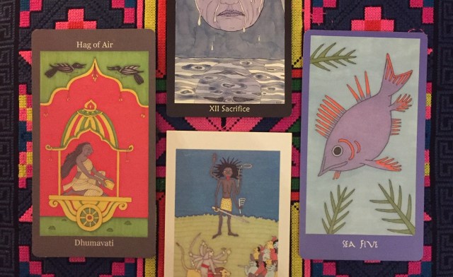 So the Tarot Reading for the Collective for June features the Tarot of the Crone, the Dark Goddess Tarot, the Minoan Tarot, and the Kali Tarot Prayer Cards, all by the inimitable Ellen Lorenzi-Prince.